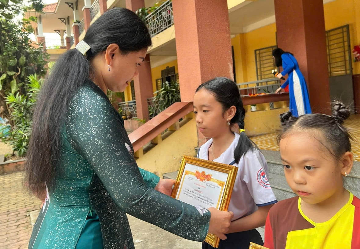 Buổi sinh hoạt càng thêm phần ý nghĩa với hoạt động trao giấy khen cho các học sinh tham gia Cuộc thi “Sáng kiến bảo đảm trật tự trường học về phòng, chống bạo lực học đường”. Những phần thưởng được trao không chỉ ghi nhận nỗ lực của các em mà còn lan tỏa thông điệp về môi trường học đường an toàn, thân thiện. Khép lại chương trình là màn biểu diễn mashup “Hò vươn mình & Tiến lên Việt Nam ơi” sôi động, đáng yêu của các em học sinh lớp 1/2, mang đến bầu không khí vui tươi, phấn khởi, tiếp thêm năng lượng tích cực cho một tuần học mới.